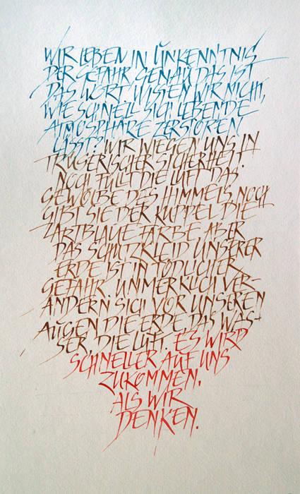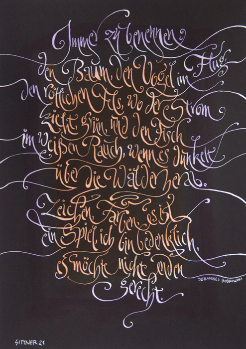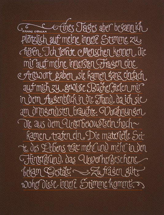 Ob klassische Kalligrafie oder freies Schrift-Bild: eine lockere Hand, Formgefühl und jahrelange Übung sind das Geheimnis.