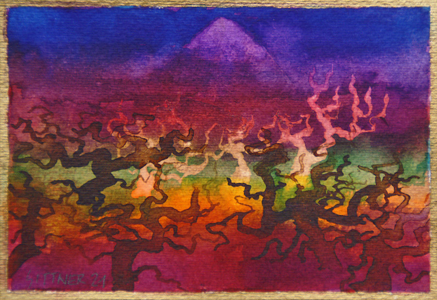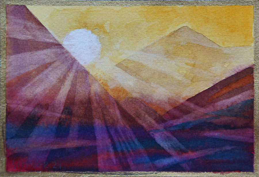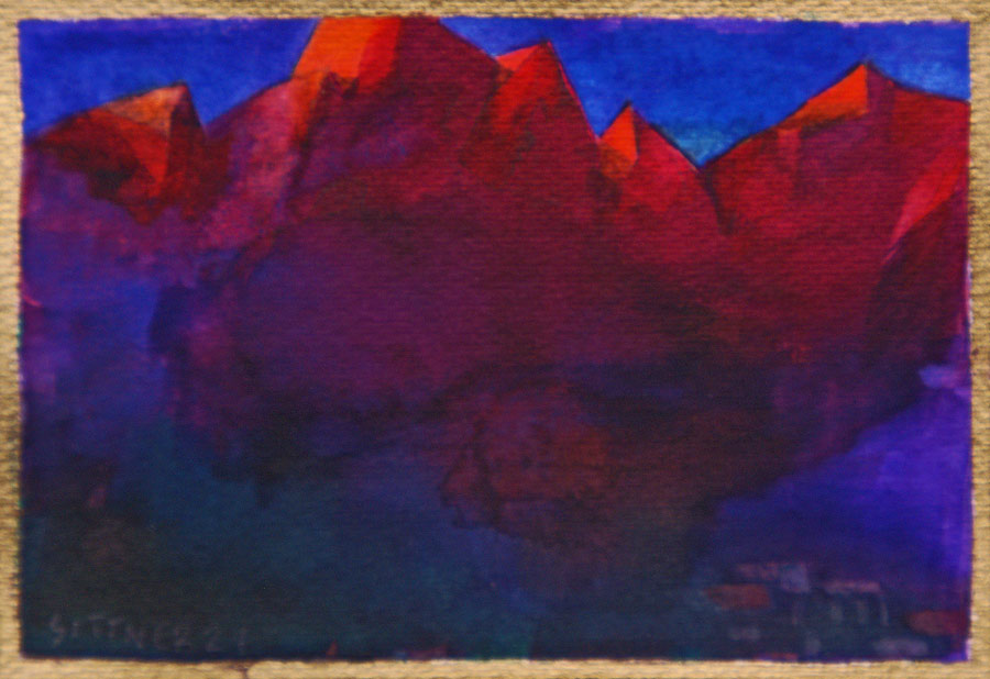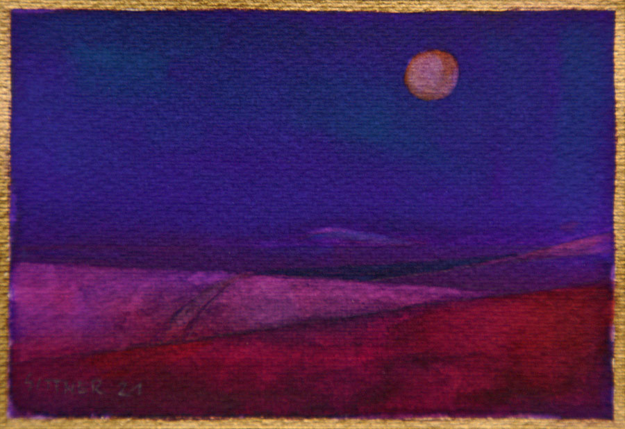 deren Schatten in komplementärem Blauviolett versinken - und als Abschluss der Szene geht auch noch der Vollmond über der Andenkordillere auf...